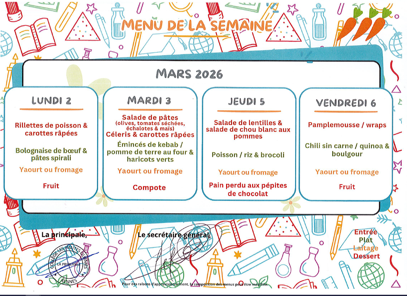 Menu de la semaine